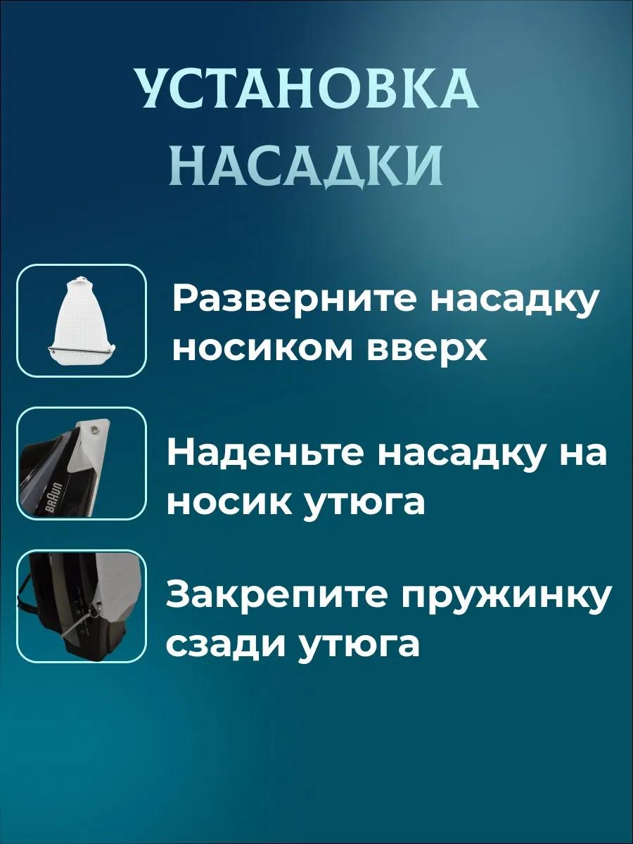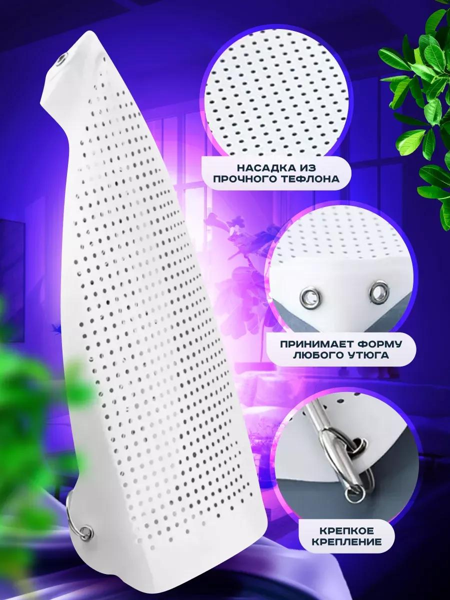 Термостойкая насадка - отличный вариант для защиты утюга и одежды при глажении. Насадка универсальная, выполнена из антипригарного тефлона, подойдет для всех видов электроутюгов стандартных размеров. Она защитит одежду и гладильную доску от образования пятен. Тефлоновую поверхность гораздо удобнее использовать, чем марлю. С ее помощью можно гладить вещи с нанесением рисунков, аппликаций, пайеток, не боясь за их сохранность, и не оставляя на подошве загрязнений и царапин. Плотный защитный чехол исключит возникновение блеска на вещах, позволит прогладить деликатные ткани, такие как шелк, шерсть, не расплавит синтетические материалы. На аксессуаре есть специальные отверстия, чтобы пар, используемый на утюге с отпаривателем, беспрепятственно проходил сквозь насадку. Гаджет поможет забыть о регулярной чистке от прилипшей грязи и нагара.